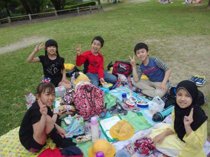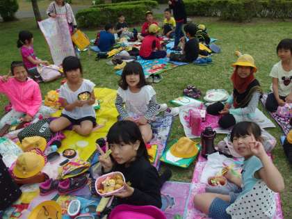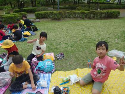 たくさん歩いて、おなかはぺこぺこだったようです。みんなおいしそうに食べていました。
