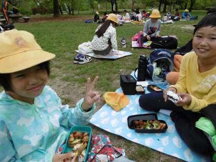緑化植物園でお弁当タイムです。山登りでお腹空いたので、おいしく食べられました。