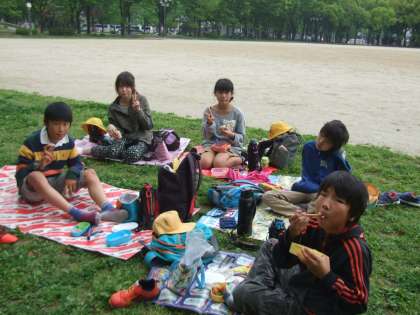 お昼も雨が降っていなかったので、白川公園で食べることができました。たくさんの人でにぎわう公園で、楽しく食べることができました。