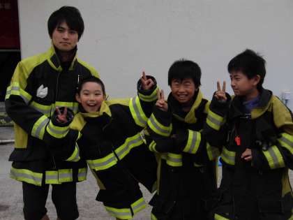 防火服は想像していたより重く、放水体験は思った以上の水圧で驚いたようです。