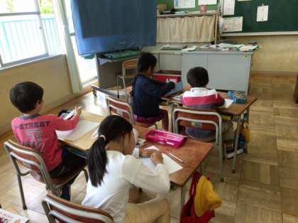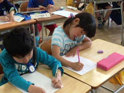 2年1組は、先日行った、1年生とのなかよしかいの、振り返りをしました。みんな、頑張って1年生を連れて学校探検をしたことを思い出して、一生懸命書いていました。