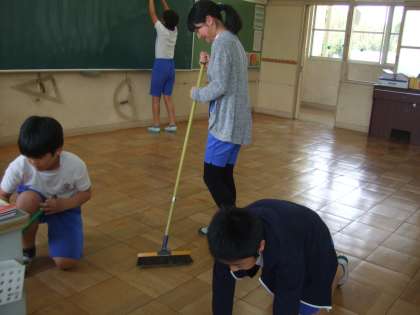 6年生の子たちにとっては、下級生にそうじの仕方を教える場となります。