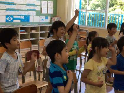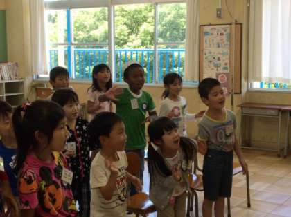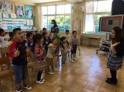 ハローハウワイユーの歌を歌い、自己紹介もしました。