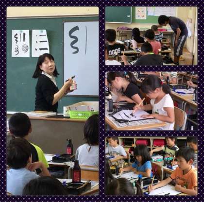まがり、はね、の筆運びについて学びました。みんな真剣に書いていました。