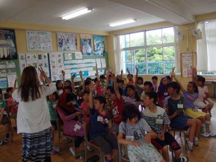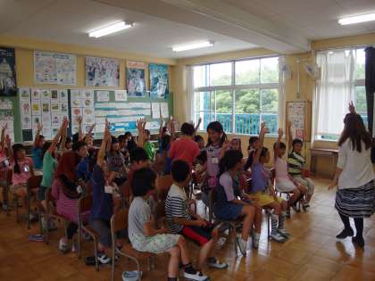 3年生になって初めての外国語の授業がありました。みんな楽しそうに英語で自己紹介をしていました。