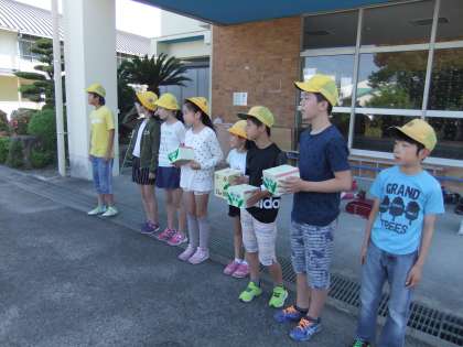 今朝は、緑の羽根募金を行いました。代表委員が募金箱をもってピロティに立ち、元気よく挨拶をしていました。来週の月曜日も行いますので、よろしくお願いします。