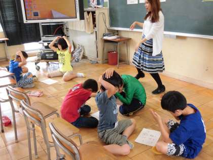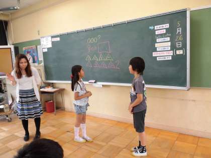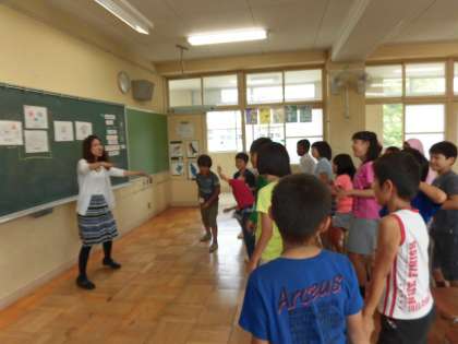 4年生になって初めての英語の学習を行いました。自己紹介の練習をしたり、歌をうたって踊ったり、とても楽しく学習できました。ペアをつくって行ったゲームは、大盛り上がりでした。