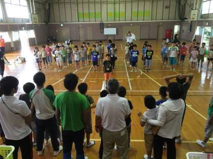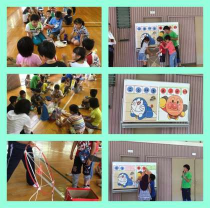 6月8日 4年生が春日台の子どもたちと交流会を行いました。いっしょに「ジャンプがえる」を作った後、「はこんでよいしょ」というゲームをやりました。最後に素敵な絵と文字ができました。「来年もいっしょに遊ぼうね」と約束してお別れしました。