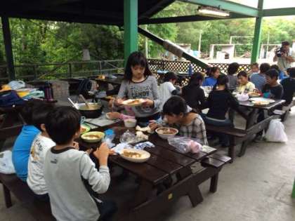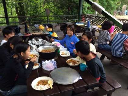 おいしくカレーを食べています。