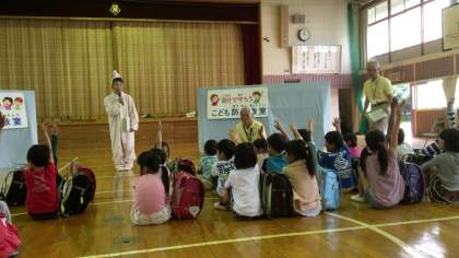 1年生が、知らない人がおもちゃやお菓子をくれると言ってももらわない、車にも乗らないという事を学びました。神屋校区は、ボニターさん、見守り隊のみなさん、地域のおじさんおばさんが、見守ってくれているので、子どもたちは安心して登下校しています。