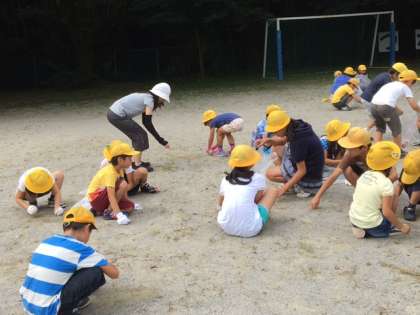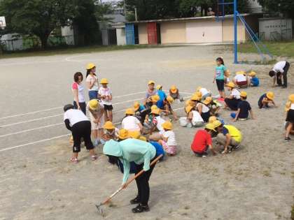 本校は陸上大会の会場校なので、トラック周辺を中心に、手で草を取っています。先生と子どもたちで、週に一回15分程度草を取るだけでも、だいぶきれいになりました。