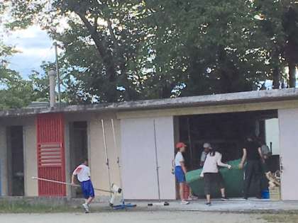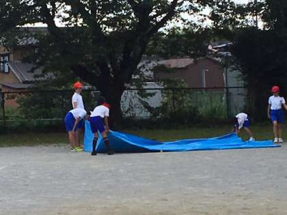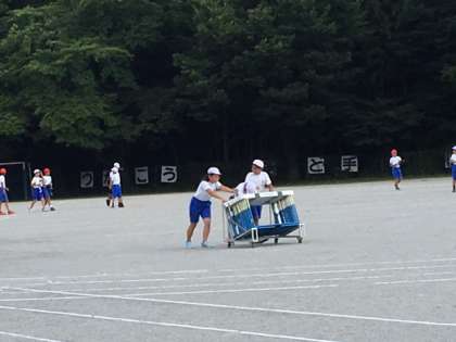 片付けも、全員で協力してやり遂げる陸上部員たちです。