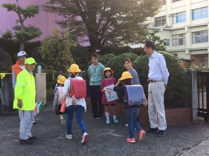 地域、保護者の皆さんと一緒に、挨拶運動をしました。みんな元気に「おはよう」の挨拶ができました。最近は校内でも、大きな声で「こんにちは」と挨拶がとびかっています。