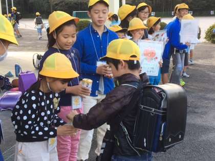児童会の代表が赤い羽根の募金も行いました。募金は明日も行いますのでよろしくお願いします。
