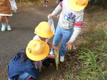 どんぐりをひろいにいったよ その1 公開日 2016/10/12 更新日 2016/10/12 1年生 生活科の学習でどんぐりをひろいにいきました。おおきいどんぐり、ちいさいどんぐり、ふとっちょどんぐり、いろいろな形のどんぐりがありました。 次は、ひろってきたどんぐりを使って、おもちゃを作ります。楽しみですね。 交通安全に気を付けて、歩いていけました。すれ違う地域の人にも、元気よくあいさつすることができました。4月と比べて、成長しましたね。