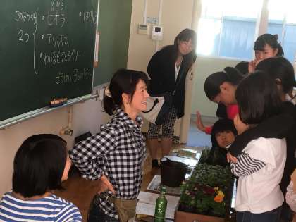 ちぎり絵・ミュージックベル・寄せ植えの様子です。