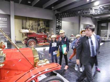 校外学習でトヨタ博物館に行ってきました。昔の車のしくみに興味津々でした。