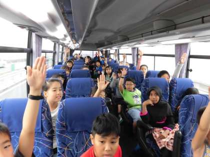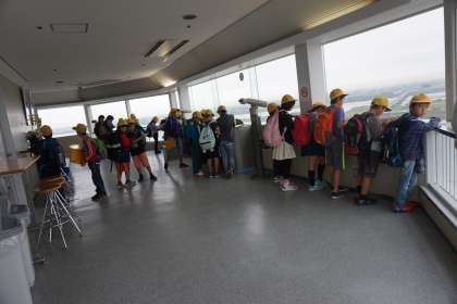 4年 木曽三川公園 その1 公開日 2016/10/31 更新日 2016/10/31 4年生 4年生の校外学習は、木曽三川公園に行きました。 展望タワーから、木曽川・長良川・揖斐川を眺めました。 治水工事についての映像を見たり、展示を見たりした後、 大きなアスレチックで遊び、室内で楽しくお弁当を食べました。 洪水が起きた時に避難する「水屋」を見学し、ガイドの方の話を聞きました。 行き帰りのバスでは、バスレク企画委員が活躍しました。
