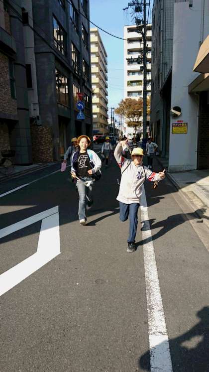 体験活動の場所に到着しました。何度も道を尋ねてたどり着いたグループは、大喜びでした。