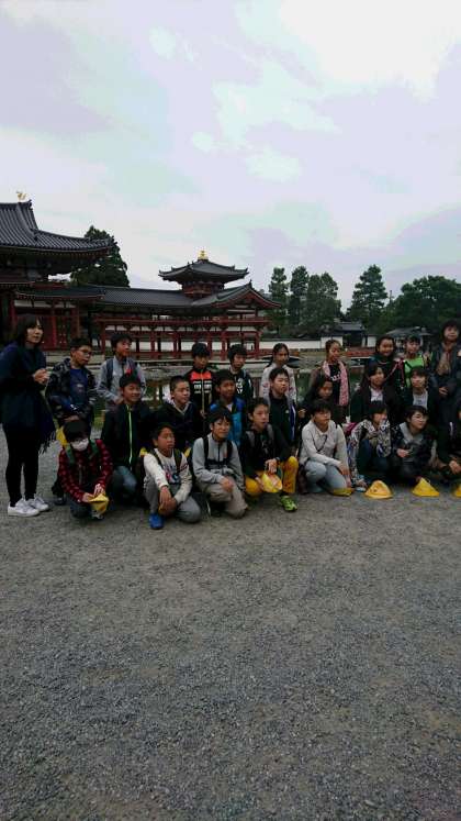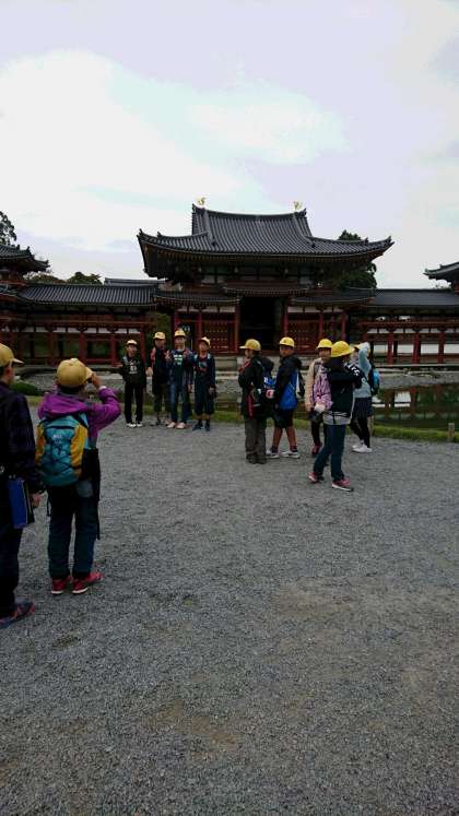 鳳凰堂の前でポーズ