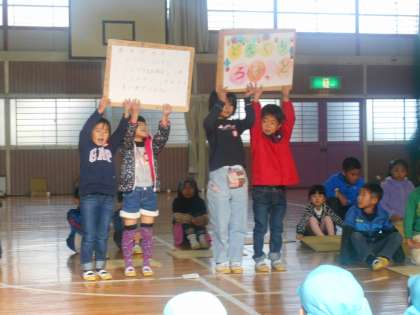 どんぐりおもちゃまつりをしたよ その1 公開日 2016/11/17 更新日 2016/11/17 1年生 神屋保育園の子を招待して、どんぐりおもちゃまつりを行いました。どのグループも上手に遊び方の説明をしました。