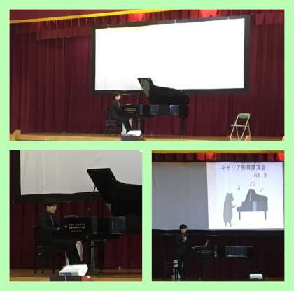 春日井出身のピアニスト内匠慧さんをお迎えして、キャリア教育講演会を開きました。