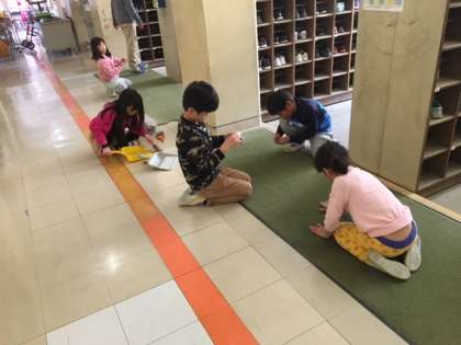 普段掃除をしない、机の脚の裏面や、高いところのホコリ取りなどをしました。どの子も、頑張って、綺麗にしていました。