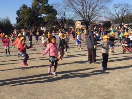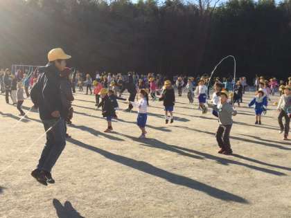 自由な技に挑戦の時間には、多くの児童が二重跳びに挑戦していました。