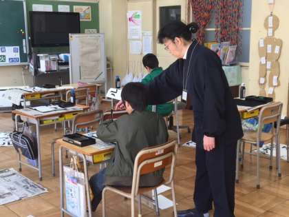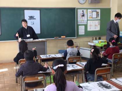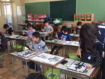 1.2年生と3.4.5組は、清水竹水先生に書道科を習っています。