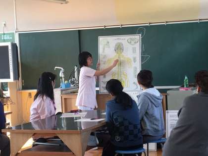 2日(木)本校理科室で、PTA主催ふれあい教育セミナー「美姿勢になるための骨盤矯正講座〜歪みを正して健康になろう〜」を開催しました。講師には、美容カイロプラクターの前田久美子さんをお招きしました。「悪い姿勢は、万病のもと」骨盤がずれると、様々な病気を引き起こすことになるので、タオルやチューブを使って、矯正を行いました。「体がすっきりした」「体が楽になった」と多くの参加者が実感しました。前田先生ありがとうございました。