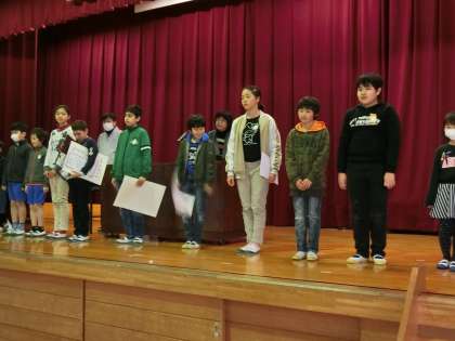 集会 公開日 2017/02/06 更新日 2017/02/06 学校行事 今日は読書感想画や短詩型文学祭の表彰があり、たくさんの児童が賞状をいただきました。校長先生から、得意なことを頑張って自信がつくと、苦手なこともやる気が出てくるという話を聞きました。