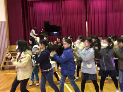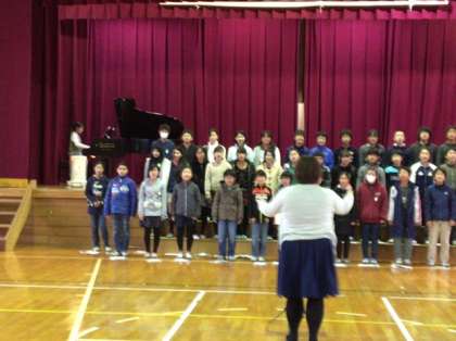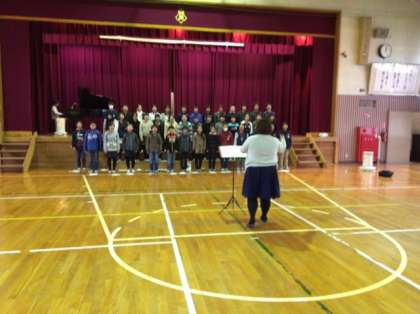 坂下中学校の音楽の先生が、卒業式で歌う歌の合唱指導に来てくださいました。