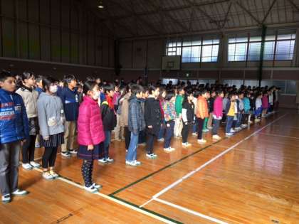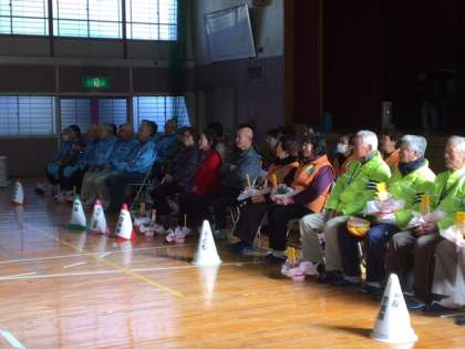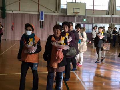 歌のプレゼントで校歌を歌いました。ボランティアの方々で、一緒に歌ってくださる方もいました。