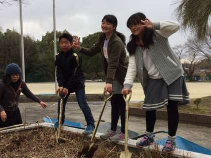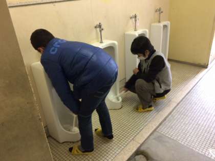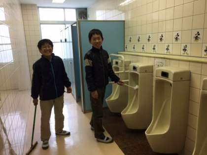 六年生が、卒業を前に、奉仕作業をしました。学校中のトイレを綺麗にしたり、観察池にたまった土を出したりしました。