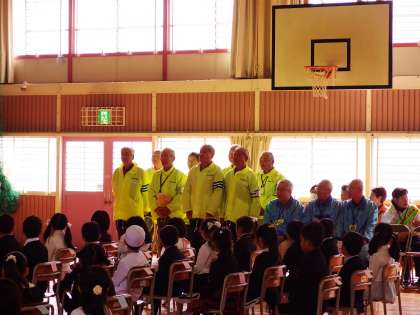 入学式その2 公開日 2017/04/06 更新日 2017/04/06 校長室より 地域の安全見守りの方も、大勢、入学式に参加していただきました。今年度も、子どもたちの安全見守り、よろしくお願いします。 1ねんせいのみなさん、あしたから、3つの「あ」のやくそく「あいさつ」「あんぜん」「ありがとう」をしっかりまもって、がっこうにきてくださいね。