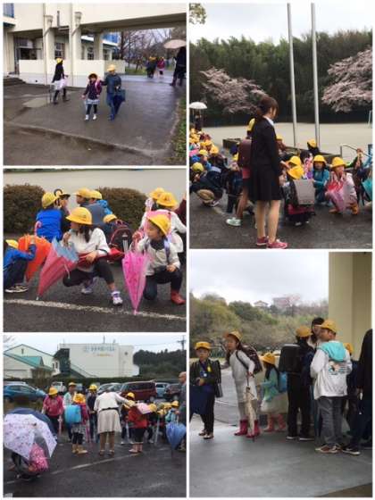 雨は少し小雨になり、朝よりは濡れなかったと思いますが、一年生を連れての始めての登下校で、子どもたちは、大変だったと思います。でも、一年生の歩く速度に合わせて、ゆっくり歩いたり、皆んながきちんとならんでいるか、後ろを気にかけたりしながら、頑張っている班長の姿は大変立派でした。