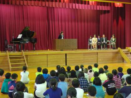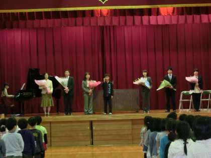 離任式 公開日 2017/04/17 更新日 2017/04/17 学校行事 4月17日離任式がありました。他の学校へ転勤された先生からご挨拶がありました。児童代表が感謝の作文を読み、花束を渡しました。全員で校歌を歌ってお別れしました。