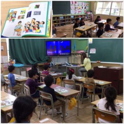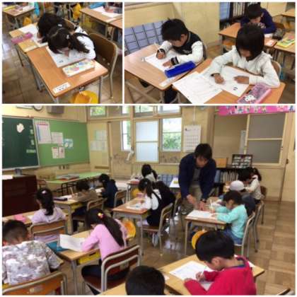 1組は、「鉛筆でまっすぐに線を引く」学習をしていました。 2組は「お話を聞く」学習をしていました。