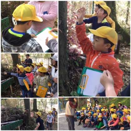 3年生遠足 やまびこの森 公開日 2017/04/28 更新日 2017/04/28 3年生 やまびこの森は、木の枝が入場切符です。みんな木の枝を拾ってビードルひろばに入れました。 そのあと、森の中で楽しく遊びました。