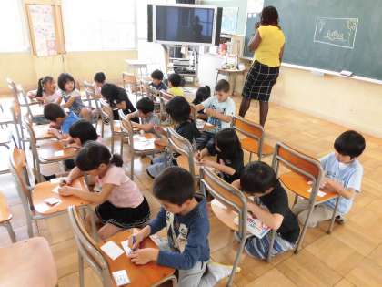 5月11日(木)に2年生になって初めての英語の学習を行いました。新しく変わった先生に緊張しながらも、挨拶ゲームや自己紹介カード作りを楽しんでいました。