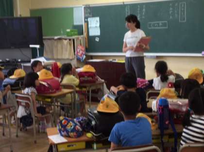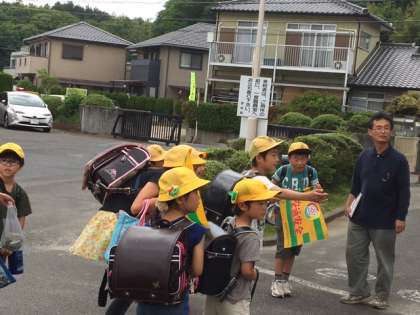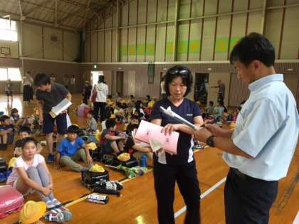 暴風警報が発令された時の下校訓練を行いました。暴風警報が発令された時は、緊急下校になります。あらかじめ、待機児童に登録されている児童以外は、通学班で下校しますので、よろしくお願いします。待機児童は、当日メールの指示に従って、お迎えをよろしくお願いします。