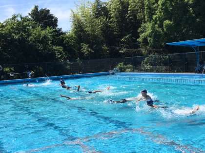 始めての水泳指導です。 公開日 2017/06/09 更新日 2017/06/09 6年生 6月7日にプール開きをしましたが、ずっと雨で入れませんでした。 今日は、1時間目から6年生が、始めてプールに入りました。 みんな気持ちよさそうに水しぶきをあげて泳いでいました。
