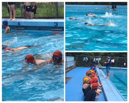 3年生と4年生は、合同で水泳の授業を行なっています。コース別に分かれて、練習をしていました。