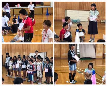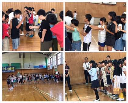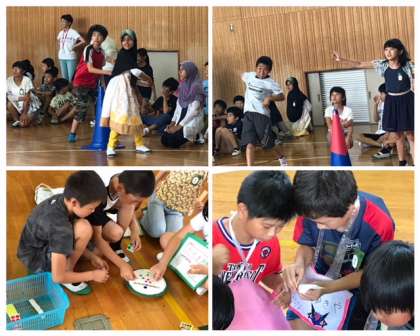 自己紹介の後、一緒にフリスビーを作り、フリスビー大会を行いました。みんな、目標よりずっと遠くに飛ばすことができました。その後、ジェンカをして楽しみました。