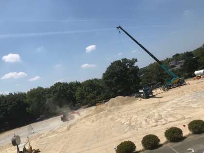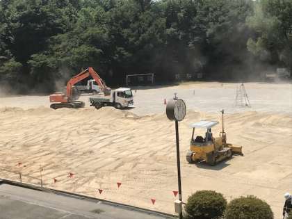 夏休みの間に、運動場の土を全て入れ替える工事をしています。