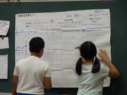 業前に交通安全反省会が行われました。2学期も安全に登下校するための話し合いをしました。