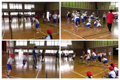 みんなで声を出して、一緒に跳ぶ練習をしました。心が一つにならないとうまく跳べません。