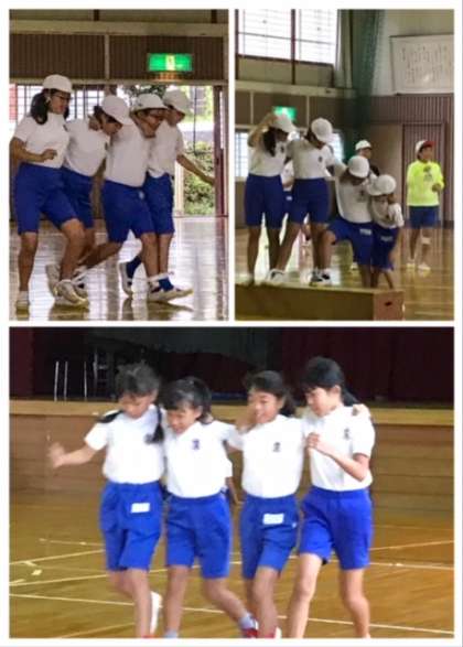 朝は雨で運動場で練習ができなかったので、5.6年生は体育館で4人5脚の練習をしました。