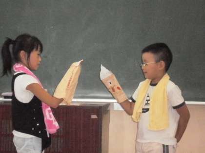 パペット同士でたのしいお話を作った班もありました。