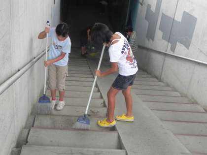 9月の地下道清掃について報告します。毎月行っている地下道清掃ですが、8月は夏休み中のためお休みでした。そして9月は始業式の日の午後に行われました。6年生4名、PTAのお母さん方3名、先生が5名、計12名で行いました。とても暑い日でしたが、みんなで協力して、きれいになりました。終了後のお茶がとてもおいしく感じられました。